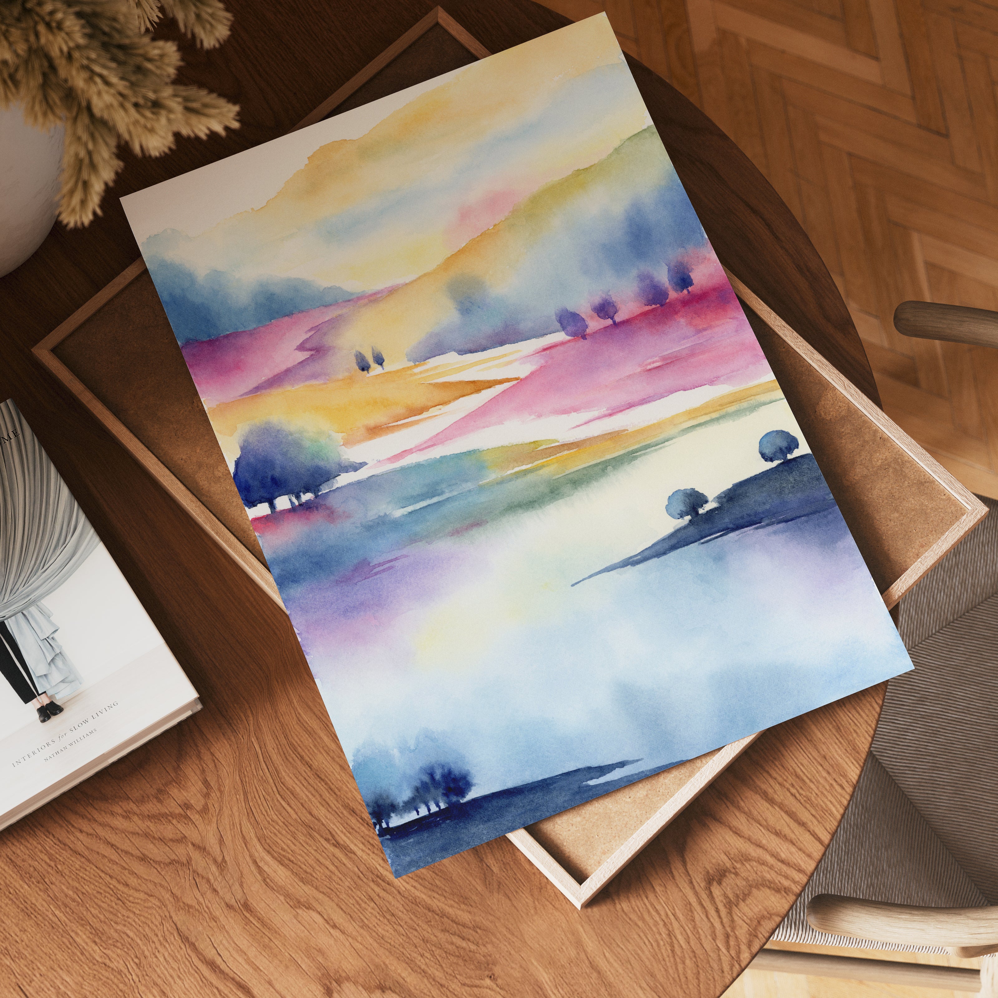 Prismatic Countryside | Abstract Mountain Watercolor Art Print