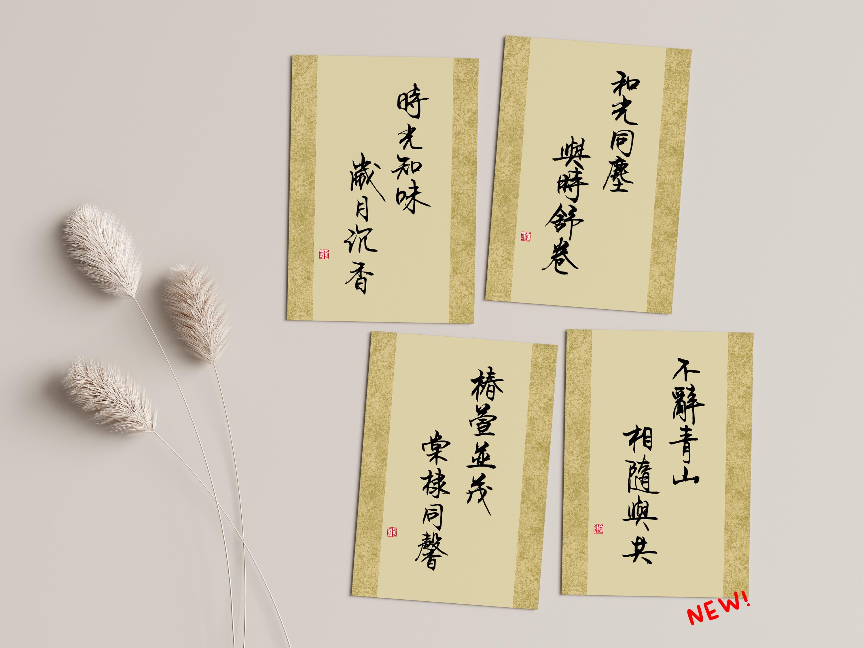 Set of 4 Chinese Calligraphy Art Prints - 5x7 inches